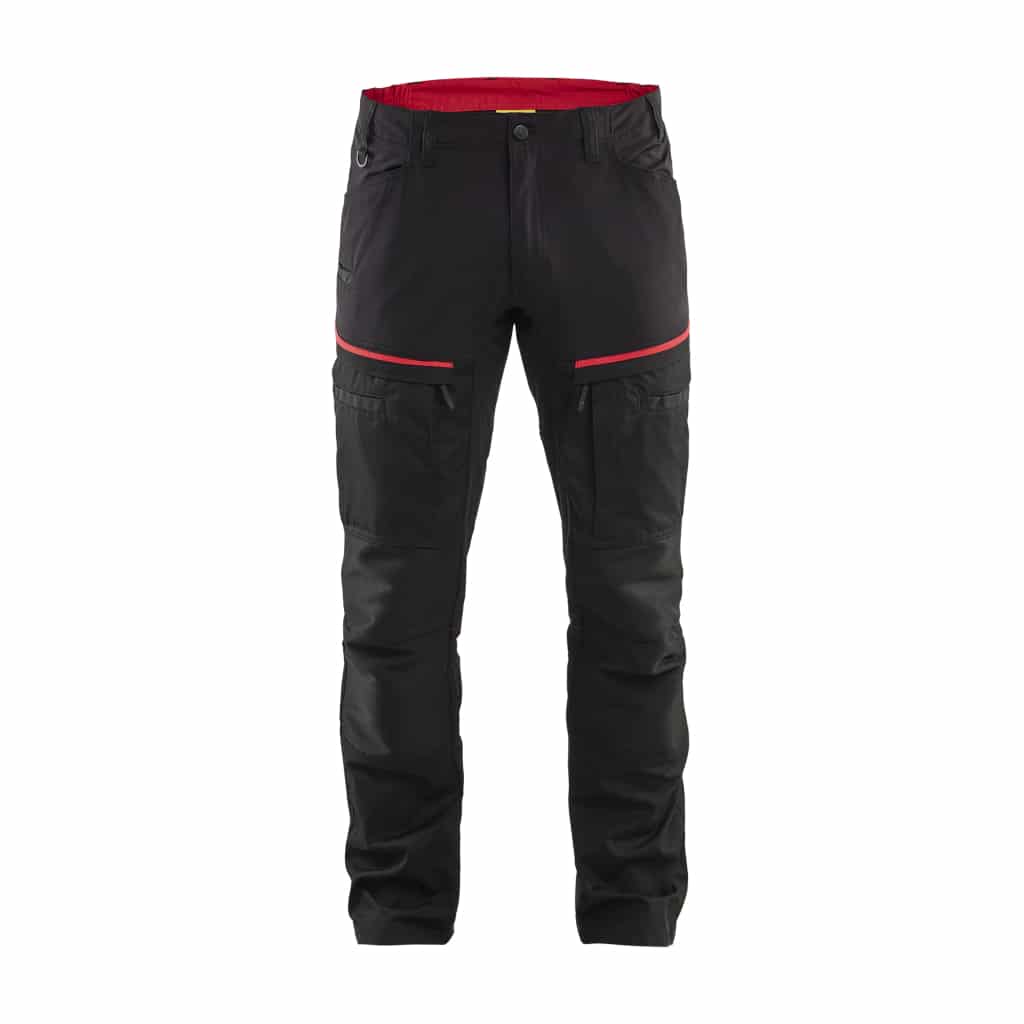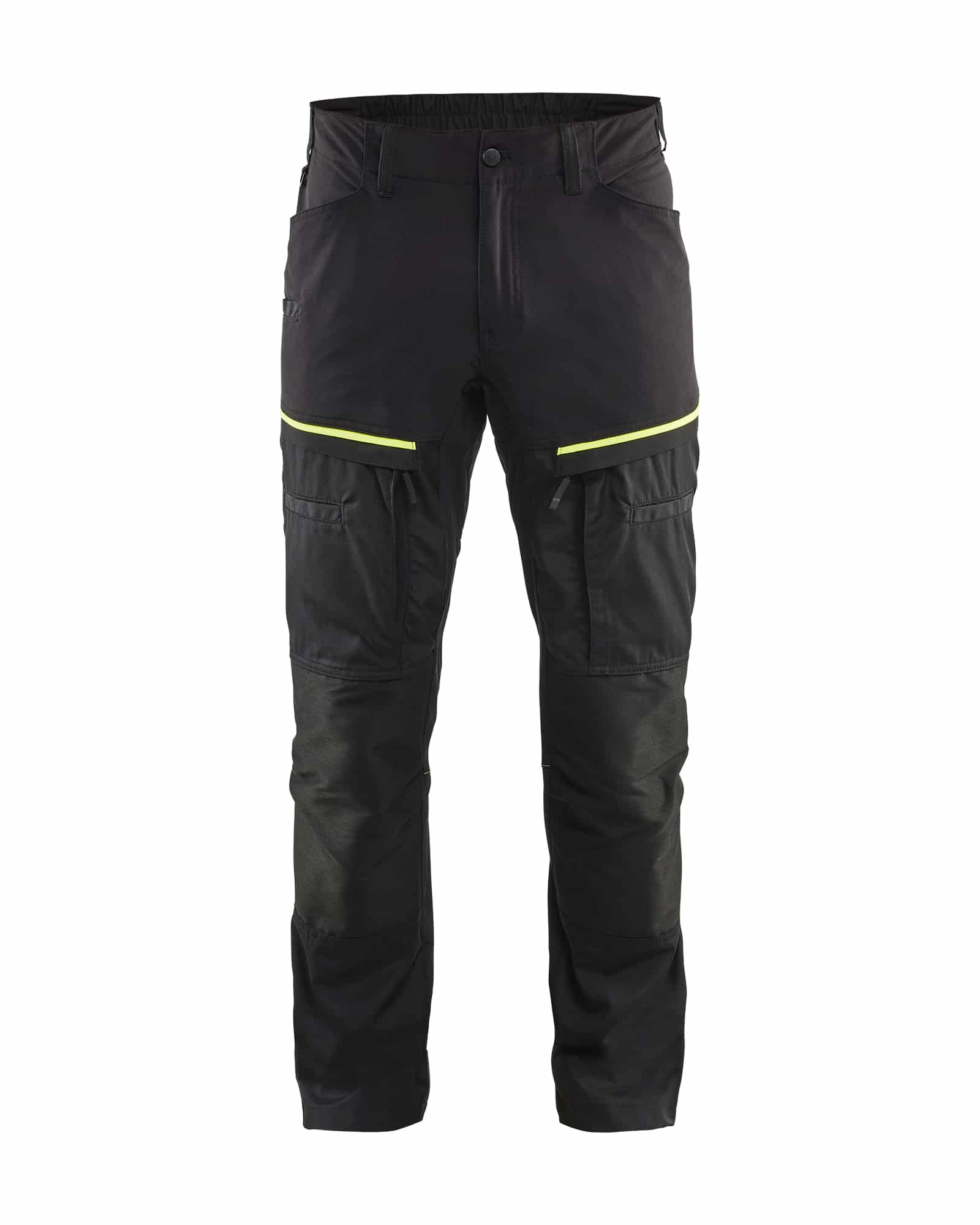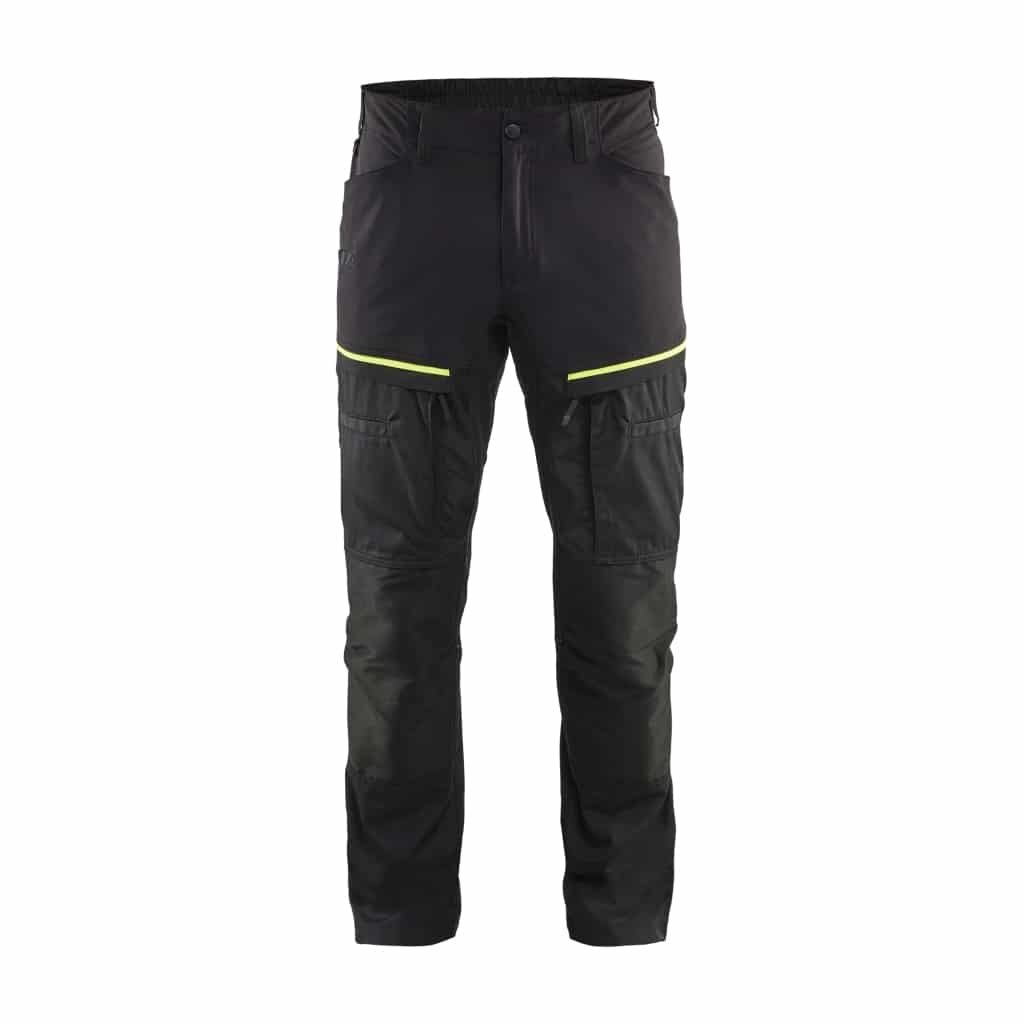 Fleksible og slidstærke service / transportbukser, der passer i forskellige situationer, der kræver komfort og bevægelsesfrihed. Bukserne har en elastisk talje og en smal pasform samt stretch paneler for øget fleksibilitet. CORDURA® Stretch forstærkning på knæ øger holdbarheden endnu mere. Bukserne har to baglommer, lommer med læg foran og en lårlomme, der er velegnet til opbevaring af dokumenter. Kontrastfarver på lommer og sømme øger det samlede indtryk. Sorte reflekterende detaljer giver buksen øget synlighed. Findes også i damemodel 7166.
