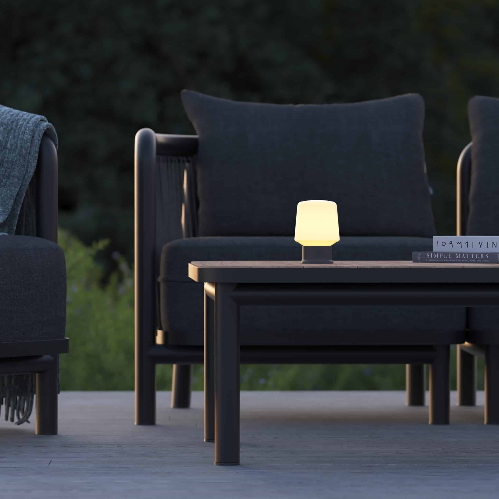 Lampen er genopladelig og fremstillet af robuste materialer, hvilket gør den IP67-certificeret – støv- og vandtæt og dermed modstandsdygtig over for alle vejrforhold.